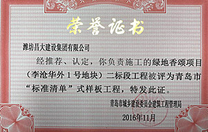 &It is learned from the quality and technology department that the second bid section project of Greenland Xiangsong project (plot 1 outside licanghua) constructed by Qingdao company of the group was rated as the "standard list" model project of Qingdao.