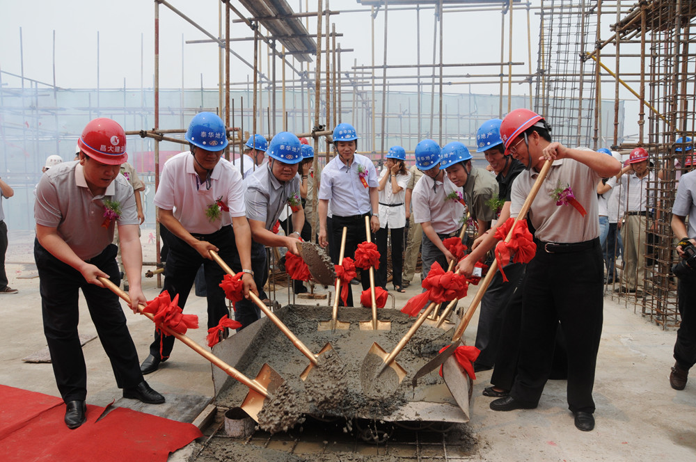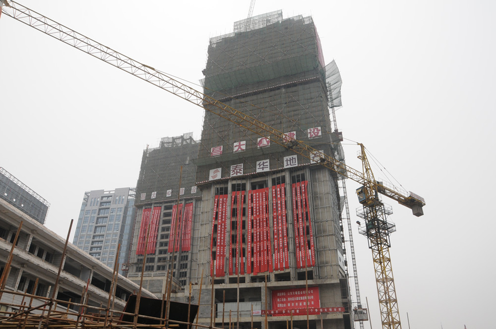 6月16日上午11時(shí)16分,由第二分公司承建的泰華城•榮觀華府工程舉行了主體封頂儀式。集團(tuán)公司董事長(zhǎng)徐鵬強(qiáng)、總經(jīng)理朱九洲,建設(shè)單位泰華集團(tuán)董事長(zhǎng)劉云江,監(jiān)理單位董事長(zhǎng)曹金彩等領(lǐng)導(dǎo)出席封頂儀式并為泰華城•榮觀華府工程裝填最后一車封頂砼。參加封頂儀式的還有來(lái)自建設(shè)單位、施工單位、監(jiān)理單位及參建單位的200多名代表。 泰華城•榮觀華府工程是濰坊市唯一的商業(yè)CBD項(xiàng)目,工程位于美麗的白浪河畔。本期項(xiàng)目總建筑面積216673平方米,工程基礎(chǔ)采用CFG復(fù)合地基,2m厚的筏板基礎(chǔ),地下三層和地下二層為車庫(kù),地下一層至四層為商業(yè),五層至二十九層為公寓。工程采用流線型設(shè)計(jì),從空中看像游戈在白浪河中一條巨大的彩魚(yú),從側(cè)面看像停泊在白浪河畔的一艘巨大的航母,1#東西塔樓像兩個(gè)巨大的風(fēng)帆。該工程自2010年4月15日筏板基礎(chǔ)圖紙出具以后正式開(kāi)工建設(shè),第二分公司項(xiàng)目部組織人員搶工期,抓質(zhì)量,保形象,克服了施工現(xiàn)場(chǎng)狹小、工程結(jié)構(gòu)復(fù)雜、施工穿插組織難度大等各方面困難,歷時(shí)368天,以比原計(jì)劃工期提前26天的優(yōu)異成績(jī)封頂,同時(shí)實(shí)現(xiàn)優(yōu)質(zhì)、安全,贏得了建設(shè)單位和監(jiān)理單位的高度稱贊。該工程的提前順利封頂,為昌大和泰華兩個(gè)集團(tuán)公司以后的戰(zhàn)略合作夯實(shí)了基礎(chǔ),埋設(shè)了基石,譜寫了輝章。