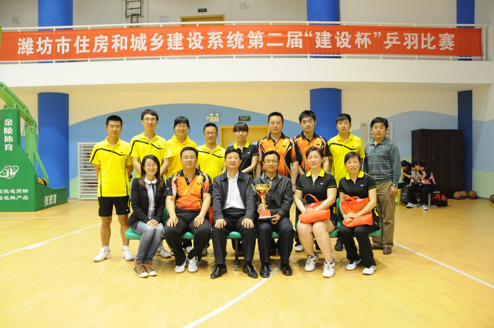 4月26日至28日,濰坊市建設系統(tǒng)迎“五一”第二屆“建設杯”乒羽比賽在濰坊藝術中心舉行,共有來自市建設系統(tǒng)的12支代表隊、百余名運動員參加了乒乓球和羽毛球的比賽。集團公司派出的乒羽代表隊獲得團體總分第一名。4月28日下午,在藝術中心籃球館舉行了頒獎儀式和閉幕式,市建設局副局長李振龍、杜天斌出席閉幕式并為獲獎運動員以及代表隊頒獎。集團公司監(jiān)事會主席、黨委副書記、紀委書記滕忠斌參加閉幕式并代表集團公司領取團體比賽第一名獎杯。