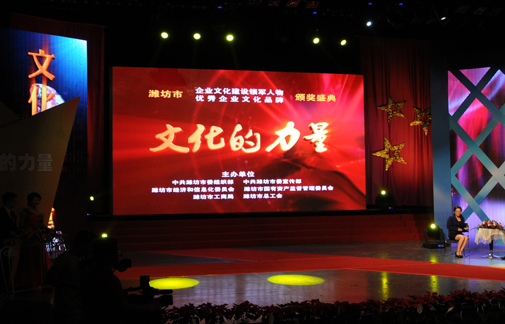 5月18日晚7時(shí)30分,由濰坊市委組織部、市委宣傳部、市經(jīng)信委、市國(guó)資委、市工商局、市總工會(huì)聯(lián)合主辦的“濰坊市企業(yè)文化建設(shè)領(lǐng)軍人物、優(yōu)秀企業(yè)文化品牌頒獎(jiǎng)盛典”在濰坊電視臺(tái)演播大廳隆重舉行。頒獎(jiǎng)活動(dòng)以《文化的力量》為主題,采用獲獎(jiǎng)單位和個(gè)人登臺(tái)接受頒獎(jiǎng)、專家訪談、文藝節(jié)目等形式交替進(jìn)行。集團(tuán)公司“昌大建設(shè)”文化品牌獲濰坊市優(yōu)秀企業(yè)文化品牌;董事長(zhǎng)、黨委書記徐鵬強(qiáng)獲濰坊市企業(yè)文化建設(shè)領(lǐng)軍人物稱號(hào)。濰坊市委副書記王獻(xiàn)玲,市委常委、宣傳部長(zhǎng)初寶杰,市委常委、組織部長(zhǎng)陳澤浦,市人大常委會(huì)黨組副書記、副主任劉明珂等領(lǐng)導(dǎo)出席頒獎(jiǎng)盛典。
