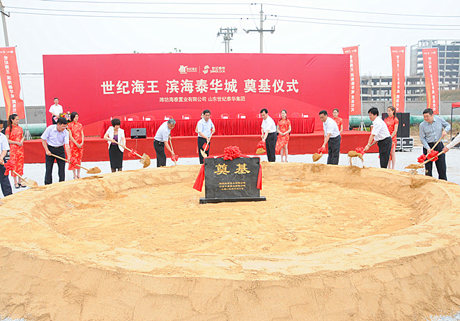2013年6月1日上午,由濱海區(qū)管委會組織的濱海泰華城、世紀海王項目奠基儀式在濱海區(qū)府前街與海港路交匯處東北角隆重舉行,集團公司總經(jīng)理朱九洲出席奠基儀式并與主席臺領(lǐng)導一同為項目培土奠基。出席儀式的領(lǐng)導還有濰坊市副市長、濱海區(qū)黨工委書記王樹華,濱海區(qū)黨工委副書記、管委會主任張恒道,濱海區(qū)管委會副主任王希光,建設銀行濰坊分行行長陳鵬,浦發(fā)銀行濰坊分行副行長劉兆建,山東世紀泰華集團董事長劉云江,山東海王集團黨委副書記、副總經(jīng)理崔秀勝等。集團公司第二分公司領(lǐng)導班子成員及員工代表,濱海區(qū)黨工委和管委會有關(guān)人員、項目所在地有關(guān)部門負責人參加了上述活動。