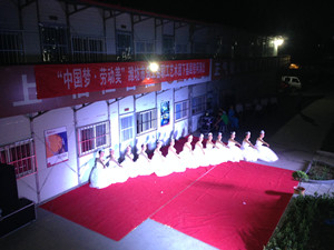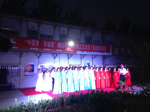 2016年5月27日晚,濰坊市總工會“中國夢?勞動美職工藝術(shù)團(tuán)下基層慰問演出”在集團(tuán)自行開發(fā)、建設(shè)中的泰和東郡工程現(xiàn)場辦公區(qū)進(jìn)行。演出從晚上七點半開始,在一個半小時的時間里,這個40人的藝術(shù)團(tuán)共演出包括獨唱、合唱、舞蹈、朗誦等節(jié)目在內(nèi)的12個節(jié)目。在盛夏即將到來的夜晚,讓職工藝術(shù)沁潤施工現(xiàn)場的勞動者。 |