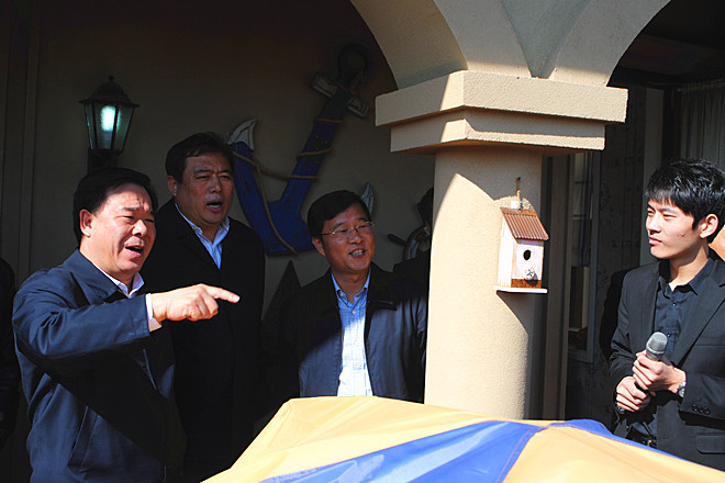 2012年10月18日上午,濰坊市委副書記、市長劉曙光在市政協(xié)副主席、市經(jīng)信委主任李傳恒的陪同下,率領(lǐng)市發(fā)改委、市財政局、市規(guī)劃局、市旅游局等有關(guān)部門負責人到昌樂參觀調(diào)研卡納圣菲項目。昌樂縣委書記、縣人大常委會主任張新強,縣委副書記、縣長高立波陪同調(diào)研。集團董事長徐鵬強陪同劉曙光參觀調(diào)研并就項目開發(fā)情況作了匯報。 上圖為徐鵬強董事長(中)向劉曙光介紹情況