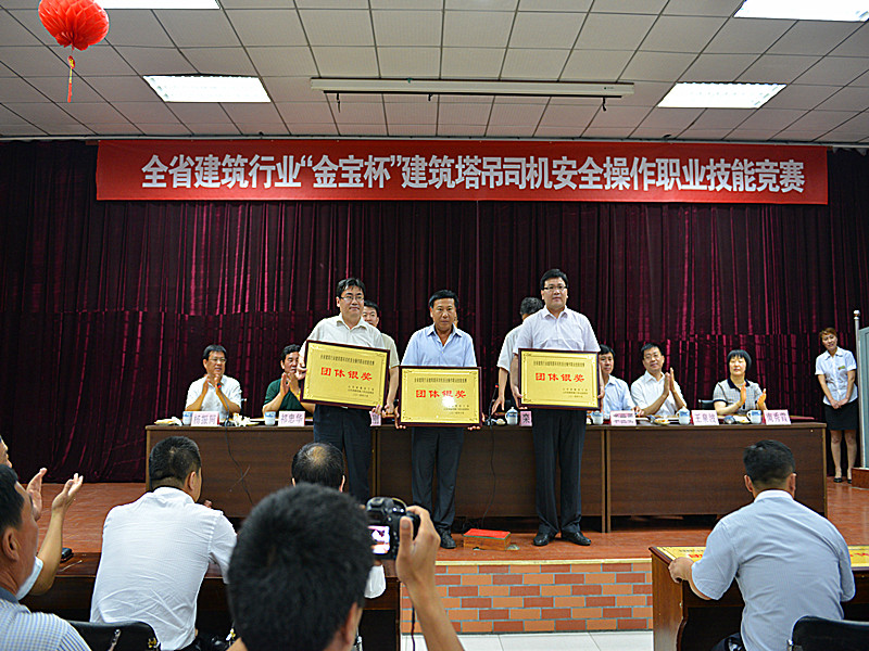 2014年6月19日,由山東省建設(shè)工會(huì)、山東省建筑安全監(jiān)督站、濰坊市建設(shè)局主辦,濰坊市質(zhì)量安全監(jiān)督站、金寶職業(yè)培訓(xùn)學(xué)校協(xié)辦的“山東省建筑行業(yè)‘金寶杯’建筑塔吊司機(jī)安全操作職業(yè)技能競賽在濰坊金寶職業(yè)培訓(xùn)學(xué)校圓滿落幕。集團(tuán)組隊(duì)代表濰坊市參加比賽,獲得團(tuán)體銀獎(jiǎng),操機(jī)手王來春榮獲個(gè)人金獎(jiǎng)。