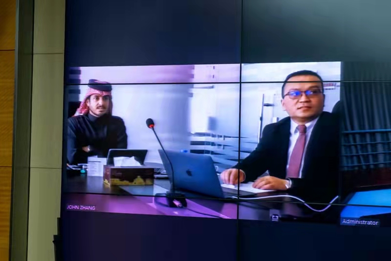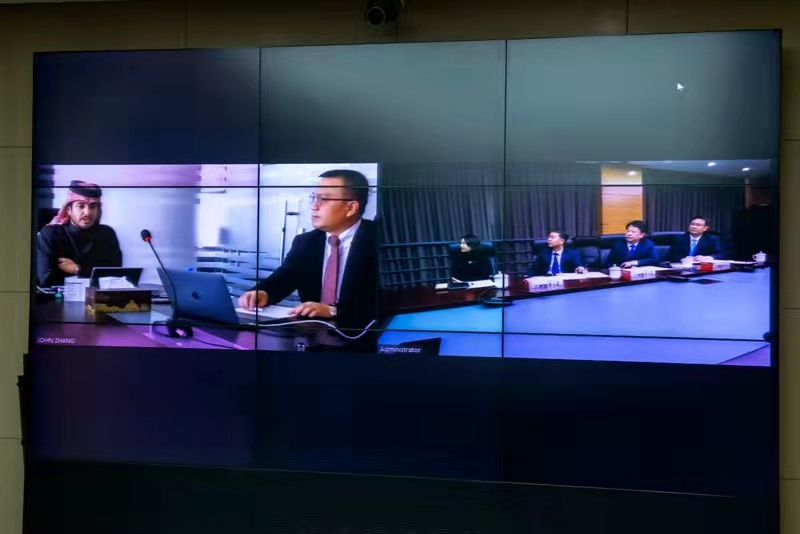 董事長徐鵬強(qiáng)、總裁朱九洲等集團(tuán)領(lǐng)導(dǎo)與卡塔爾扎伯王爺舉行視頻會(huì)議