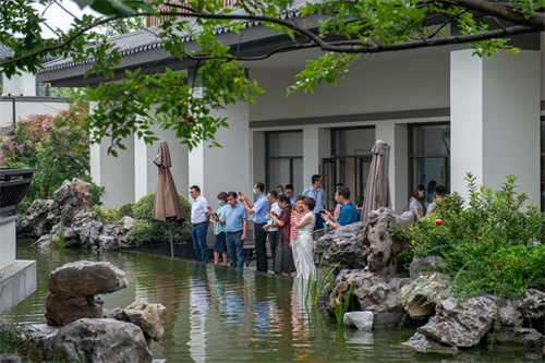 2022年7月6日,由濰坊市民政局社會組織培育中心組織的以“建設(shè)學習型協(xié)會、商會組織”為目的的第16期“訪名企、共發(fā)展”學習交流活動,走進昌大集團參觀交流。濰坊市民政局二級調(diào)研員李凡華率十四家協(xié)會、商會會長、秘書長出席了這次交流活動。集團公司監(jiān)事會主席、紀委書記、工會主席穆乃杰全程陪同。 該第16期行業(yè)協(xié)會、商會諸位會長、秘書長在集團公司期間,先后參觀了集團企業(yè)展廳、建筑史館、黨建展廊、中頤龍湖康養(yǎng)小鎮(zhèn),深入考察了解了集團公司的發(fā)展,對集團公司的良性發(fā)展給予充分充分肯定和高度評價。在中頤龍湖康養(yǎng)小鎮(zhèn),生活服務(wù)總監(jiān)孫玉闖陪同參觀了小鎮(zhèn)已交付的頤園組團、青龍湖公園、頤樂康養(yǎng)中心及頤養(yǎng)洋房樣板間并為大家做詳細講解,對康養(yǎng)小鎮(zhèn)規(guī)劃、建設(shè)、運營、康養(yǎng)服務(wù)理念及康養(yǎng)服務(wù)內(nèi)容等方面有了深入的了解。