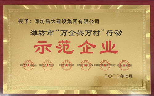 集團(tuán)公司被授予濰坊市“萬(wàn)企興萬(wàn)村”行動(dòng)示范企業(yè)稱號(hào)