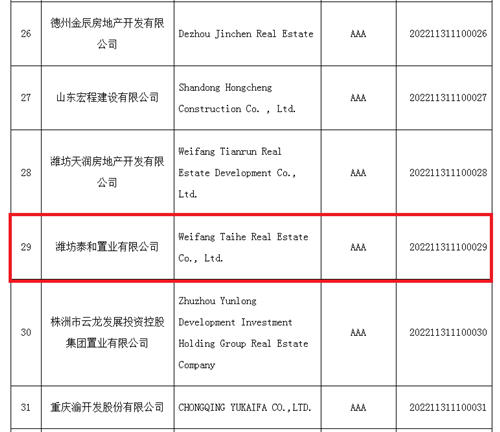 集團(tuán)泰和置業(yè)再獲全國房地產(chǎn)開發(fā)企業(yè)AAA級(jí)信用等級(jí)