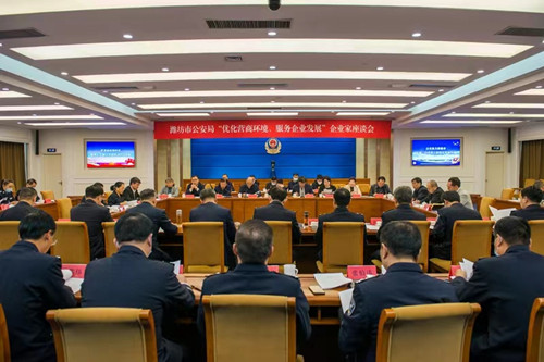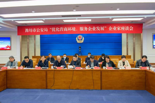 2023年3月22日下午,濰坊市公安局企業(yè)家座談會在市公安局北樓二樓電視電話會議室舉行。濰坊市副市長、市政府黨組成員、市公安局黨委書記、局長、督察長徐磊,濰坊市委統(tǒng)戰(zhàn)部副部長、濰坊市工商聯(lián)黨組書記徐鳳徽,濰坊市公安局在家領(lǐng)導(dǎo)班子,濰坊市各領(lǐng)域重點(diǎn)企業(yè)負(fù)責(zé)人,市公安局指揮中心、政治部等有關(guān)部門主要負(fù)責(zé)同志出席會議。會議通報(bào)了去年以來市公安機(jī)關(guān)有關(guān)工作情況,解讀近期市公安局出臺的服務(wù)企業(yè)相關(guān)文件,聽取了與會同志對公安機(jī)關(guān)服務(wù)企業(yè)的相關(guān)需求和意見建議,徐磊副市長講了話。會上,集團(tuán)公司董事長徐鵬強(qiáng)對一直以來公安系統(tǒng)為企業(yè)發(fā)展?fàn)I造的良好環(huán)境表示感謝,對廣大公安干警落實(shí)治安防范措施、加大掃黑除惡力度;嚴(yán)厲打擊經(jīng)濟(jì)犯罪、挽回經(jīng)濟(jì)損失;交通運(yùn)輸中的指導(dǎo)服務(wù);網(wǎng)警部門高效的輿情管控等諸項(xiàng)工作中的辛勤付出表示真誠謝意。并希望繼續(xù)加強(qiáng)警企共建,共同攜手抓穩(wěn)定、?保平安、促和諧,在全市拼經(jīng)濟(jì)、搞建設(shè)、抓發(fā)展中做出更大的貢獻(xiàn)。