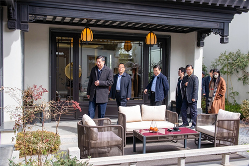 2023年3月25日上午,山東省住建廳廳長王玉志到集團(tuán)中頤龍湖康養(yǎng)小鎮(zhèn)項(xiàng)目參觀調(diào)研,安丘市委書記賈勤清,市住建局黨組書記、局長鐘光文、副局長戴玉霞,集團(tuán)董事長徐鵬強(qiáng)陪同調(diào)研。王玉志廳長依次參觀了小鎮(zhèn)服務(wù)中心、頤園中式合院園區(qū)與樣板間、小鎮(zhèn)頤樂康養(yǎng)中心。聽取了小鎮(zhèn)總體規(guī)劃布局匯報(bào),對中式合院的建筑文化、小鎮(zhèn)宜人的自然環(huán)境以及康養(yǎng)配套運(yùn)營方面的精心考量與服務(wù)經(jīng)驗(yàn)給予了高度評價。