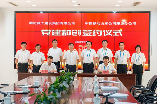 2023年9月13日下午,濰坊昌大建設(shè)集團(tuán)與中國(guó)移動(dòng)山東公司濰坊分公司“黨建和創(chuàng)”戰(zhàn)略合作協(xié)議簽約儀式在濰坊移動(dòng)總部辦公樓舉行。集團(tuán)公司黨委書記、董事長(zhǎng)徐鵬強(qiáng),濰坊移動(dòng)黨委書記、總經(jīng)理李亞平出席簽約儀式。集團(tuán)公司紀(jì)委書記穆乃杰與濰坊移動(dòng)黨委委員、工會(huì)主席、副總經(jīng)理李廣代表雙方在協(xié)議書上簽字。