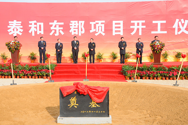 2012年11月20日上午,由集團泰和公司開發(fā)的“泰和東郡”項目舉行了隆重的開工奠基儀式。集團高管層領(lǐng)導徐鵬強、李坤明、姜建魯、穆乃杰、張連悅、閆鵬、劉雁冰出席開工奠基儀式。出席開工奠基儀式并在主席臺就位的領(lǐng)導和嘉賓有濰坊市委常委、高新區(qū)黨工委書記、管委會主任趙志遠,高新區(qū)黨工委副書記、管委會副主任陳甲才,高新區(qū)黨工委委員、管委會副主任兼經(jīng)發(fā)局局長曲志剛,高新區(qū)黨工委委員、黨政辦公室主任唐偉,集團董事長徐鵬強,山東海王銀河醫(yī)藥公司董事長孔憲俊,集團副總經(jīng)理兼泰和公司總經(jīng)理姜建魯。集團全體中層以上人員、第四分公司部分管理人員參加了開工奠基儀式。開工奠基儀式由高新區(qū)黨工委委員、管委會副主任譚建民主持。