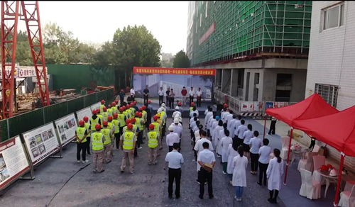 2022年9月28日上午9點58分,由集團(tuán)四建公司總承包施工的東營市臨床醫(yī)技綜合實踐基地一體化建設(shè)項目——臨床醫(yī)技綜合樓封頂儀式在項目現(xiàn)場隆重舉行。 東營市人民醫(yī)院黨委書記徐新生、院長張振海、副院長岳長春,集團(tuán)公司董事長徐鵬強(qiáng)、副總裁王建波,山東新開元建設(shè)項目管理有限公司董事長宗輝出席封頂儀式。東營市人民醫(yī)院黨委書記徐新生宣布“封頂”。 參加封頂儀式的還有:集團(tuán)安裝公司總經(jīng)理劉志偉、裝飾幕墻公司總經(jīng)理付光文,四建公司副總經(jīng)理叢興杰、總經(jīng)理助理馬康文,建設(shè)、監(jiān)理、集團(tuán)四建公司等相關(guān)單位員工代表100余人。